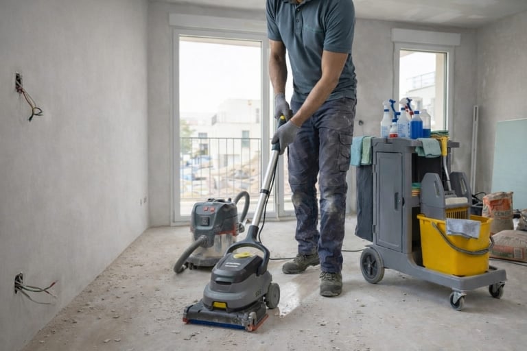 Nettoyage complet après travaux, votre bien prêt à aménager.